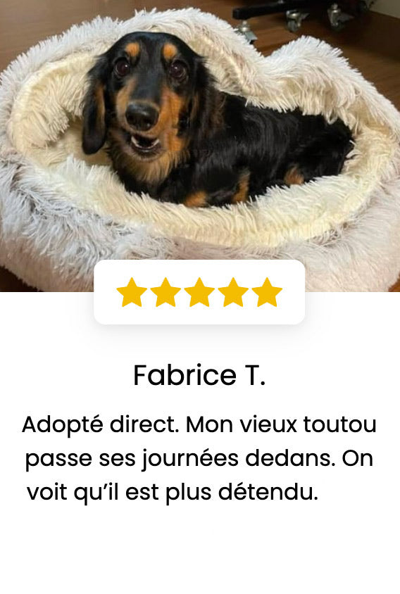 Voyez votre chien passer de l'agitation au calme absolu. Grâce à son cocon apaisant, il profite enfin d'un sommeil profond, d'un stress réduit et d'un confort inégalé — jour après jour.